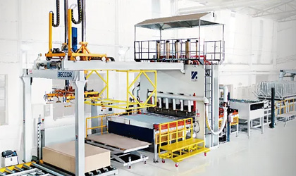 圆丰压贴机搭载高速传动系统与智能温控模块,压贴 配备高精度伺服电机与压力传感器,确保板材与饰面 效率较传统设备提升30% 以上